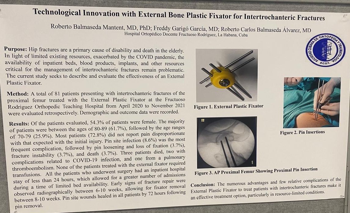 También se presentó un póster sobre el fijador de cadera, de la autoría del Dr. C. Roberto Balmaseda Manent.