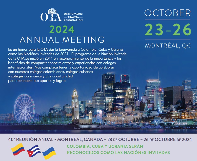 Cuba es, junto a Colombia y Urania, Nación Invitada al 40 Congreso de la Orthopaedic Trauma Association (OTA) de EE.UU. que se celebra en Montreal, Canadá, del 23 al 26 de octubre.